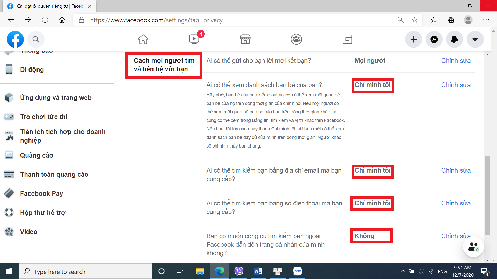 – Phía bên tay phải, kéo xuống một chút bạn sẽ thấy “Cách mọi người tìm và liên hệ với bạn“.