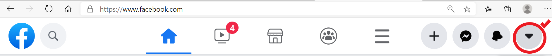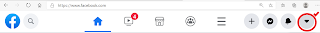 – Vào dấu tam giác khoanh đỏ như hình, nằm ở góc trên bên phải của màn hình facebook